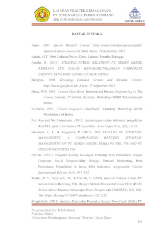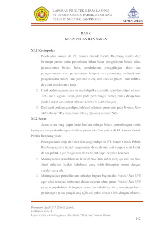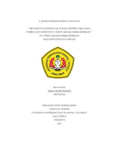 Nuraini, Adila Silmi (2024) MENGHITUNG EFISIENSI ALAT RAW GRINDING MILL PADA PEMBUATAN SEMEN DI PT. SEMEN GRESIK PABRIK REMBANG. Project Report (Praktek Kerja Lapang dan Magang). UPN Veteran Jawa Timur, UPN Veteran Jawa Timur. (Unpublished)