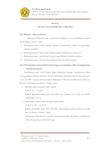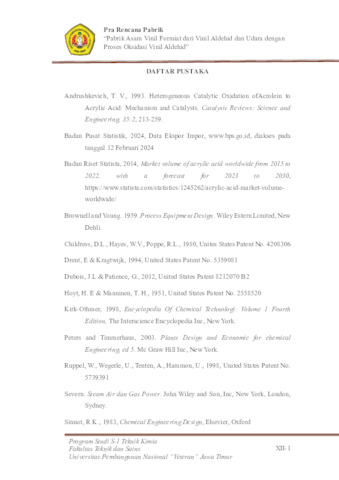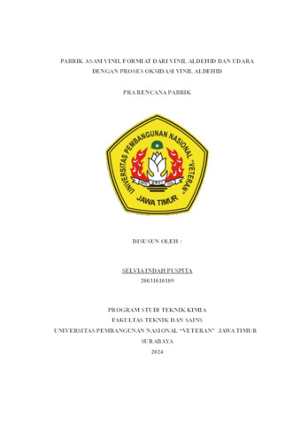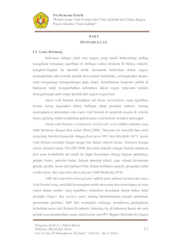 Puspita, Selvia Indah (2024) PABRIK ASAM VINIL FORMIAT DARI VINIL ALDEHID DAN UDARA DENGAN PROSES OKSIDASI VINIL ALDEHID. Undergraduate thesis, UPN Veteran Jawa Timur.