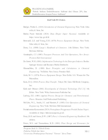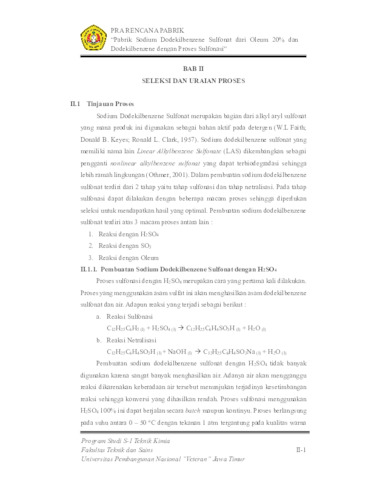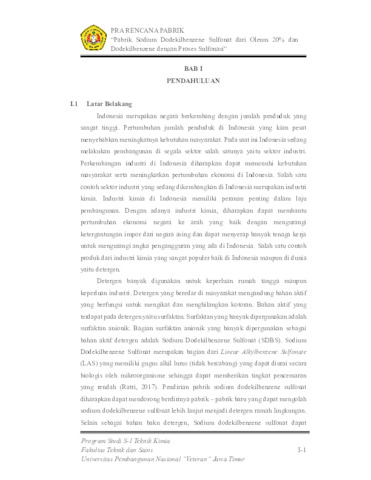 Azzahra, Tsania Putri (2024) PRA RANCANGAN PABRIK SODIUM DODEKILBENZENE SULFONAT DARI OLEUM 20% DAN DODEKILBENZENE DENGAN PROSES SULFONASI. Undergraduate thesis, UPN Veteran Jawa Timur.