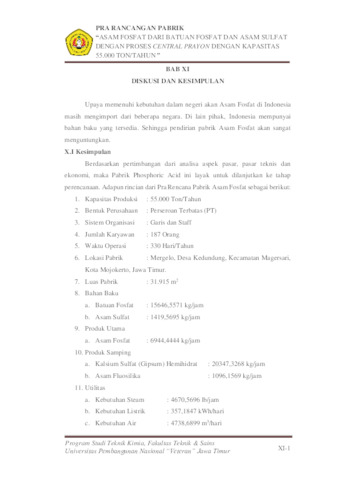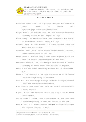 APRILIANTY, SYASMITHA LUCKY (2024) PABRIK ASAM FOSFAT DARI BATUAN FOSFAT DAN ASAM SULFAT DENGAN PROSES CENTRAL PRAYON DENGAN KAPASITAS 55.000 TON/TAHUN. Undergraduate thesis, UPN "VETERAN" JAWA TIMUR.