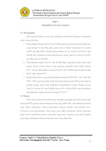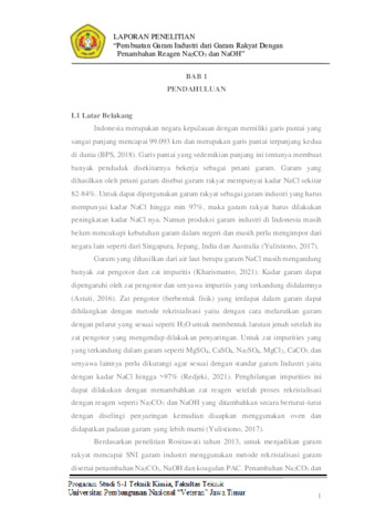 Krisnanto, Ardo and Abdullah, Muhammad Adam (2024) Pembuatan Garam Industri dari Garam Rakyat dengan Penambahan Reagen Na2CO3 dan NaOH. Undergraduate thesis, UPN Veteran Jawa Timur.