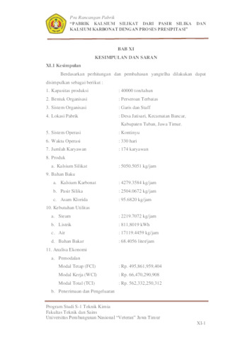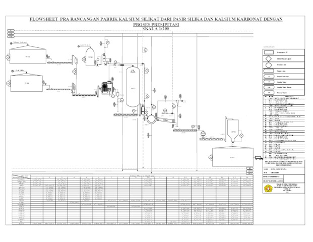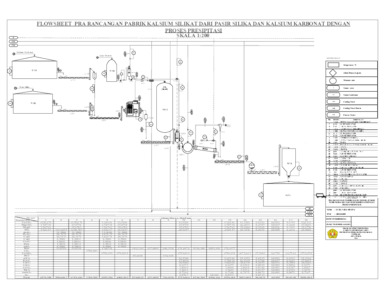 Pabrik Kalsium Silikat dari kalsium karbonat dan pasir silika menggunakan proses presipitasi. Pabrik ini direncanakan pada kapasitas 40.000 ton/tahun di Desa Jatisari, Kecamatan Bancar, Kabupaten Tuban, Jawa Timur. Pabrik Kalsium Silikat ini menggunakan sistem operasi kontinyu selama 24 jam dalam sehari dengan 330 hari kerja dan 174 karyawan. Pabrik ini menggunakan bahan baku kalsium karbonat yang diperoleh dari PT. Bhumidana Indonesia yang berada di Tuban, serta Pasir Silika yang diperoleh dari PT. Mekar Jaya Silica di Tuban. Produk yang dihasilkan yakni kalsium silikat 93.43%. Kalsium karbonat dapat dimanfaatkan pada berbagai macam industri, salah satunya yaitu bahan baku untuk keramik tradisional. Proses produksi yang digunakan pada pabrik kalsium silikat ini adalah proses presipitasi. Tahap presipitasi atau reaksi padat-padatan dilakukan pada suhu 1600 ˚C dan menggunakan electric furnace. Setelah proses reaksi selesai padatan produk dan pengotornya dibawa menuju cooling screw conveyor untuk didinginkan. Setelah didinginkan didalam Cooling Screw Conveyor produk dibawa menuju Tangki Pencucian untuk dilakukan pelarutan menggunakan asam klorida, pengotor yang dilarutkan berupa SiO2. Setelah melalui Tangki Pencucian produk dilakukan pemisahan menggunakan Rotary Drum Vakum Filter untuk menghilangkan sisa asam klorida yang masih melekat menggunakan air (H2O). Setelah itu hasil filtrat dari Rotary Drum Vakum Filter di umpankan menuju Rotary Dryer untuk mengurangi kadar air yang terkandung didalam padatan. Setelah itu produk keluaran rotary dryer di bawa menuju Ball Mill untuk menyeragamkan ukurannya