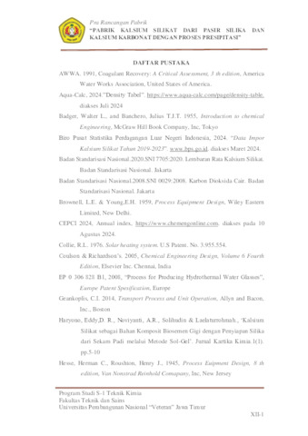 MELITA, LUSIA NADA (2024) PRA RANCANGAN PABRIK KALSIUM SILIKAT DARI KALSIUM KARBONAT DAN PASIR SILIKA DENGAN PROSES PRESIPITASI. Undergraduate thesis, UPN Veteran Jawa Timur.