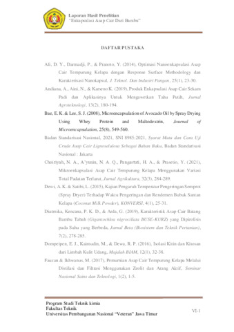 Asma', Salma Putri Aisyah (2024) Penelitian Enkapsulasi Asap Cair dari Bambu. Undergraduate thesis, UPN Veteran Jawa Timur.