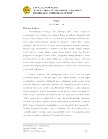 Muttaqin, Anfai Syifa (2024) PRA RANCANGAN PABRIK PABRIK KARBON TETRAKLORIDA DARI KARBON DISULFIDA DENGAN PROSES KLORINASI. Undergraduate thesis, UPN VETERAN JAWA TIMUR.
