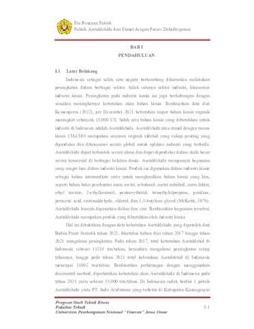Lestari, Ayu Suci (2024) PRA RENCANA PABRIK ASETALDEHIDA DARI ETANOL DENGAN PROSES DEHIDROGENASI. Undergraduate thesis, UPN Veteran Jawa Timur.