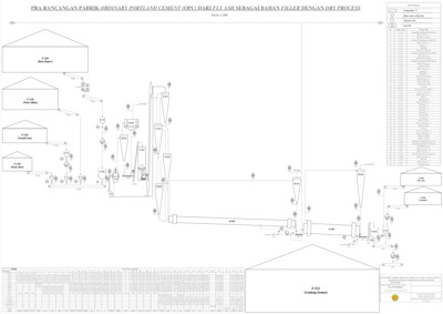 Pabrik Ordinary Portland Cement (OPC) dari fly ash sebagai bahan filler dengan metode dry process kapasitas 245.000 ton/ tahun. Pabrik ini akan didirikan di Kawasan Industri, Kabupaten Tuban, Jawa Timur, Indonesia. Bahan baku yang digunakan untuk memproduksi semen adalah batu kapur, tanah liat, pasir silika, pasir besi, fly ash, dan gypsum yang diperoleh melalui kerja sama dari beberapa perusahaan tambang serta menggunakan limbah fly ash dari perusahaan yang memiliki pembangkit listrik sendiri seperti PT. Petrokimia Gresik. Proses kering atau dry process pada pembuatan semen jenis Ordinary Portland Cement (OPC), memiliki 4 tahapan yaitu tahap penyiapan bahan baku, tahap penggilingan awal, tahap pembakaran, dan tahap penggilingan akhir. Kapasitas Produksi : 245.000 Ton/ Tahun Bentuk Perusahaan : Perseroan Terbatas Sistem Organisasi : Garis dan Staff Lokasi Pabrik : Kawasan Industri, Kabupaten Tuban, Jawa Timur, Indonesia Luas Tanah : 36.259 m2 Sistem Operasi : Kontinyu Waktu Operasi : 330 Hari/ Tahun ; 24 Jam/ Tahun