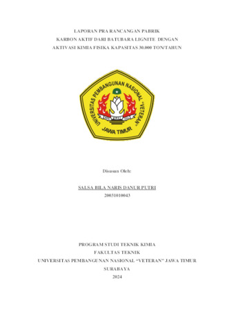 Putri, Salsa Bila Naris Danur (2024) KARBON AKTIF DARI BATUBARA LIGNITE DENGAN AKTIVASI KIMIA FISIKA KAPASITAS 30.000 TON/TAHUN. Undergraduate thesis, UPN Veteran Jawa Timur.