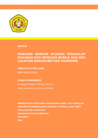 Maulana, Dimas Octa (2024) RANCANG BANGUN APLIKASI PENJUALAN MAKANAN SISA BERBASIS MOBILE DAN GEO LOCATION DENGAN METODE HAVERSINE. Undergraduate thesis, UPN Veteran Jawa Timur.