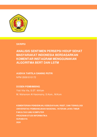 Putri, Audiva Tartila Daning (2024) Analisis Sentimen Persepsi Hidup Sehat Masyarakat Indonesia Berdasarkan Komentar Instagram Menggunakan Algoritma BERT dan LSTM. Undergraduate thesis, UPN Veteran Jawa Timur.