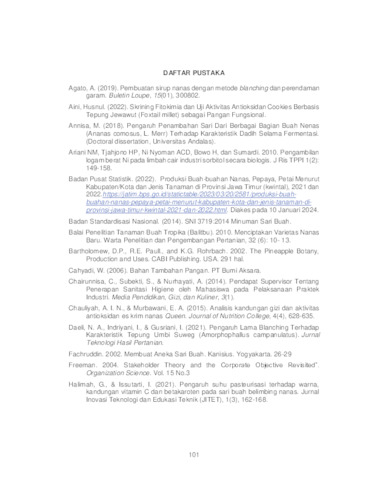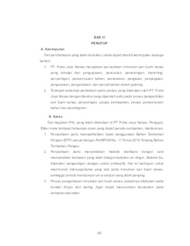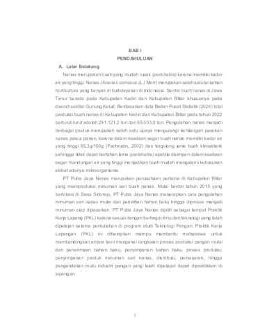 Christabela, Theofania Doa Andani (2024) PROSES PRODUKSI MINUMAN SARI NANAS DI PT. PUTRA JAYA NANAS, PONGGOK, BLITAR. Project Report (Praktek Kerja Lapang dan Magang). Fakultas Teknik UPN "Veteran" Jawa Timur, Surabaya. (Unpublished)