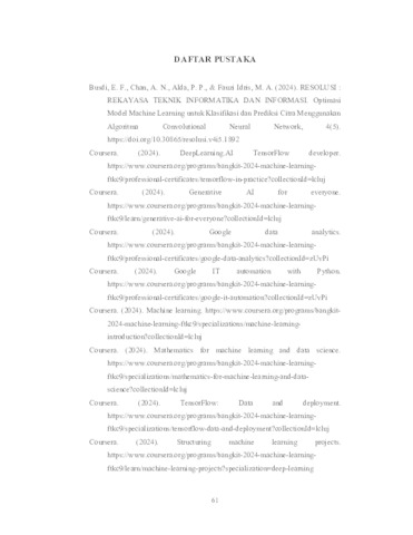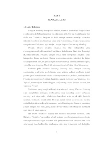 Latar belakang kegiatan ini adalah untuk menjawab krisis kesehatan global yang dilaporkan oleh WHO pada tahun 2022, di mana 2,5 miliar orang dewasa mengalami kelebihan berat badan dan 890 juta di antaranya obesitas. Mengabaikan label nutrisi pada makanan dan minuman kemasan dapat meningkatkan risiko penyakit kronis seperti diabetes dan obesitas. Oleh karena itu, tujuan dari proyek ini adalah untuk mengembangkan sebuah aplikasi yang dapat memberikan informasi nutrisi yang mudah diakses kepada pengguna, sehingga mereka dapat membuat keputusan diet yang lebih bijak. Metode yang digunakan dalam pengembangan aplikasi ini mencakup pengumpulan dataset visual dari makanan dan minuman kemasan, ekstraksi fitur gambar menggunakan teknik deep learning, dan penerapan teknologi transfer learning dengan arsitektur MobileNetV2. Proses ini melibatkan beberapa langkah, mulai dari pengumpulan data berupa video, ekstraksi frame-frame dari video tersebut, hingga pelatihan model Machine Learning menggunakan Google Colab. Framework Agile digunakan untuk mengelola proyek ini, memungkinkan penyesuaian yang cepat terhadap umpan balik dan perubahan. Hasil dari kegiatan ini menunjukkan bahwa model Machine Learning yang dikembangkan berhasil mencapai tingkat akurasi yang tinggi, dengan model yang menggunakan teknologi transfer learning menunjukkan performa yang lebih robust. Model mampu mengenali gambar dengan skor keyakinan sebesar 90%. Aplikasi ini diharapkan dapat meningkatkan kesadaran pengguna mengenai kandungan nutrisi dalam makanan dan minuman kemasan, serta membantu mereka membuat pilihan diet yang lebih sehat. Kata kunci: Machine Learning, transfer learning, MobileNetV2, pengenalan gambar, framework Agile