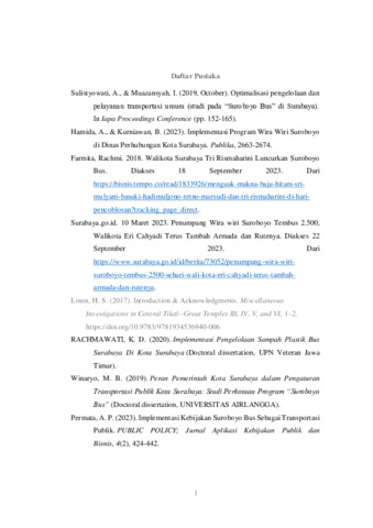Waradana, Farhan Kusuma (2024) Penyediaan Layanan Transportasi Publik Wira Wiri Suroboyo di Kota Surabaya Melalui Prespektif Public Private Partnership. Undergraduate thesis, UPN Veteran Jawa Timur.