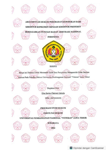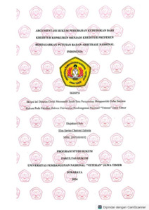 Zakaria, Elza Savira Chairani (2024) Argumentasi Hukum Perubahan Kedudukan dari Kreditur Konkuren Menjadi Kreditur Preferen Berdasarkan Putusan Badan Arbitrase Nasional Indonesia. Undergraduate thesis, UPN Veteran Jawa Timur.