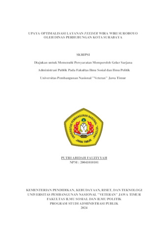 fauziyyah, putri abidah (2024) UPAYA OPTIMALISASI LAYANAN FEEDER WIRA WIRI SUROBOYO OLEH DINAS PERHUBUNGAN KOTA SURABAYA. Undergraduate thesis, UPN VETERAN JAWA TIMUR.