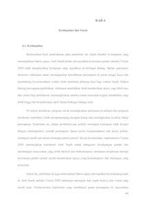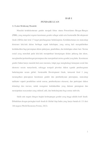 Masalah ketidaksetaraan gender menjadi fokus utama Perserikatan Bangsa-Bangsa (PBB), yang mengakui urgensi kesetaraan gender sebagai salah satu Sustainable Development Goals (SDGs) dari total 17 target pembangunan berkelanjutan. Salah satu negara dengan tingkat ketimpangan gender yang tinggi adalah Arab Saudi. Dibuktikan dengan peringkat Arab Saudidi Global Gap Index yang hanya berada di 131 dari 146 negara. Arab Saudi memiliki motivasi yang kuat untuk mencapai kesetaraan gender, dan hal ini diwujudkan dengan adanya program Arab Vision 2030. Arab Vision 2030, diluncurkan pada tahun 2016 oleh PutraMahkota Arab Saudi Mohammed bin Salman, merupakan program transformasi ambisius yang bertujuan mendiversifikasi ekonomi negara tersebut dan meningkatkan kualitas hidup warganya. Arab Saudi melalui Program Arab Vision 2030 merubah beberapa aturan di bidang Ekonomi; Pendidikan; Kesehatan dan Harapan Hidup; dan Pemberdayaan Politik demi mengatasi isu kesetaraan gender di negaranya.