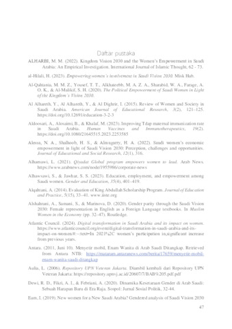 Putra, Pramana Ajie (2024) Upaya Arab Saudi Mewujudkan Kesetaraan Gender Dalam Tujuan Pembangunan Berkelanjutan Melalui Program Arab Vision 2030. Undergraduate thesis, UPN Veteran Jawa Timur.