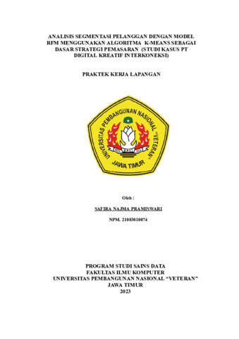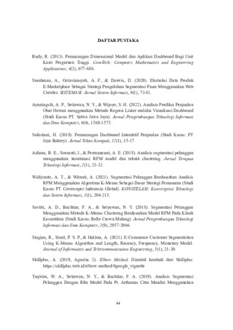 Pramiswari, Safira Najma (2024) ANALISIS SEGMENTASI PELANGGAN DENGAN MODEL RFM MENGGUNAKAN ALGORITMA K-MEANS SEBAGAI DASAR STRATEGI PEMASARAN (STUDI KASUS PT DIGITAL KREATIF INTERKONEKSI). Project Report (Praktek Kerja Lapang dan Magang). FAKULTAS ILMU KOMPUTER, SURABAYA. (Unpublished)