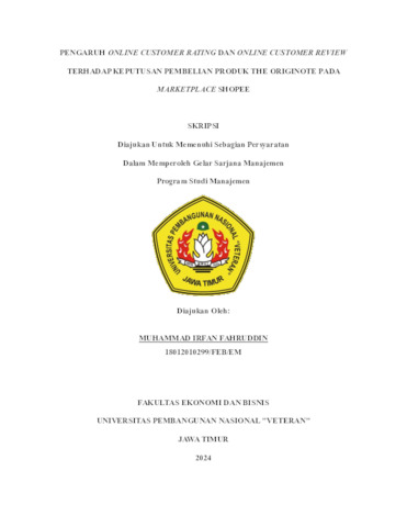 Fahruddin, Muhammad Irfan (2024) PENGARUH ONLINE CUSTOMER RATING DAN ONLINE CUSTOMER REVIEW TERHADAP KEPUTUSAN PEMBELIAN PRODUK THE ORIGINOTE PADA MARKETPLACE SHOPEE. Undergraduate thesis, UPN Veteran Jawa Timur.