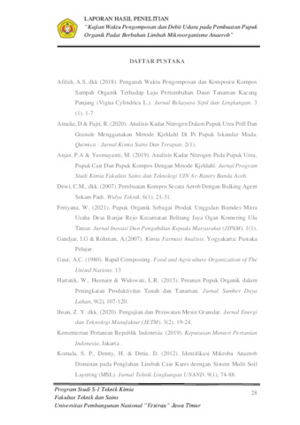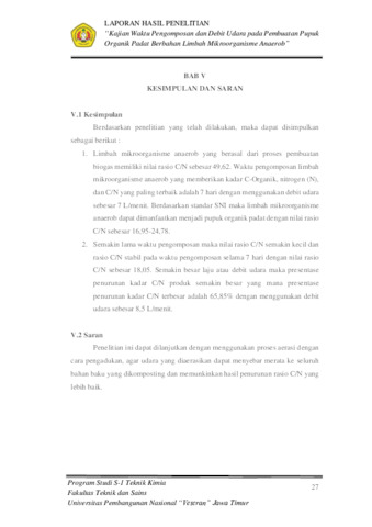 Awardani, Niken Febrila (2024) Kajian Waktu Pengomposan dan Debit Udara pada Pembuatan Pupuk Organik Padat Berbahan Limbah Mikroorganisme Anaerob. Undergraduate thesis, UPN "Veteran" Jawa Timur.