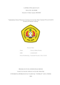 Fitriani, Natasya Melda (2024) OPTIMALISASI PELAYANAN CUSTOMER SERVICE DAN TIKET CHECKIN PT KAI DAOP 8 SURABAYA DI STASIUN GUBENG. Project Report (Praktek Kerja Lapang dan Magang). Fakultas Ilmu Sosial dan Ilmu Politik UPN "Veteran" Jawa Timur, Surabaya. (Unpublished)
