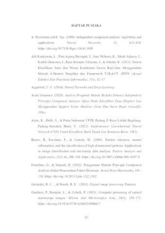 Daffa', Muhammad Falikhuddin (2024) Perbandingan Pengaruh Reduksi Dimensi Metode Principal Component Analysis (PCA) dengan Metode Independent Component Analysis (ICA) dalam Pengenalan Motif Batik. Undergraduate thesis, UPN Veteran Jawa Timur.