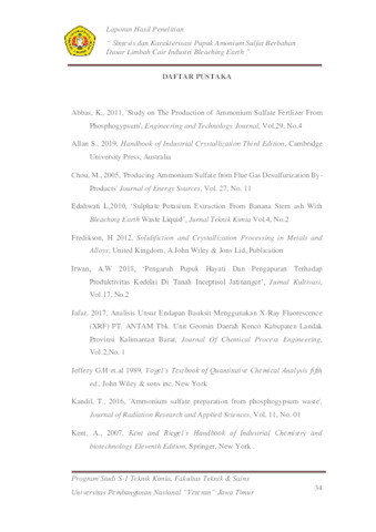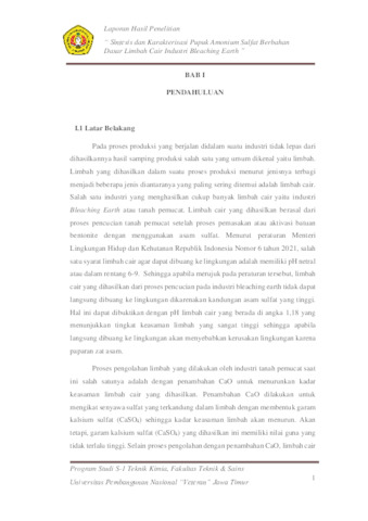 Ayu Emilia Candra Dewi, Berliana (2024) Sintesis Dan Karakterisasi Pupuk Amonium Sulfat Berbahan Dasar Limbah Cair Industri Bleaching Earth. Undergraduate thesis, UPN "Veteran" Jawa Timur.