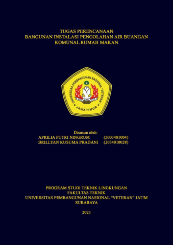 Pradani, Brillyan Kusuma and Ningrum, Aprilia Putri (2023) TUGAS PERANCANGAN BANGUAN PENGOLAHAN AIR BUANGAN KOMUNAL RUMAH MAKAN. UNSPECIFIED thesis, UPN Veteran Jawa Timur.
