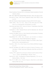 Alkohol lemak atau biasa disebut juga dengan fatty alcohol (FA) merupakan salah satu produk oleokimia yang dihasilkan mulai dari asam lemak dan metil ester serta dianggap sebagai oleokimia dasar karena dapat digunakan lebih lanjut dalam produksi produk turunannya. Konsumsi alkohol lemak dunia mencapai sekitar 3,5 juta ton pada tahun 2020. Konsumsi yang sangat besar tersebut berasal dari aplikasi yang sangat besar termasuk perawatan pribadi, perawatan di rumah, farmasi, bahan pengawet, kertas, pertanian, pakan ternak, karet, cat, pelapis, plastik, polimer, tekstil, bahan kimia industri, biofuel, deterjen, pelumas, dan lain-lain. Peluang didirikannya pabrik fatty alcohol di Indonesia cukup besar, maka perlu direncanakan perancangan pabrik kimia dengan produk fatty alcohol. Pabrik ini direncanakan akan berdiri pada tahun 2027 dengan kapasitas 50.000 ton/tahun di desa Pelintung, Kecamatan Medang Kampai, Dumai. Pabrik beroperasi selama 330 hari dalam setahun dengan jumlah tenaga kerja 212 Karyawan. Pembuatan Fatty Alcohol menggunakan proses hidrogenasi, dimana proses ini dilakukan dengan mereaksikan metil ester dan hidrogen di dalam reaktor dengan bantuan katalis CuCr. Reaktor beroperasi pada kondisi temperatur 300℃ dan tekanan 4 atm. Konversi yang dihasilkan adalah 95%. Produk yang telah dipisah dari gas hydrogen dialirkan menuju distilasi I untuk memisahkan produk methanol sebagai top produk dari campuran fatty alcohol dan metil ester sedangkan sedangkan bottom produk akan dialirkan menuju Menara distilasi II untuk memurnikan produk utama berupa fatty alcohol >99 %. Kemudian produk dialirkan ke tangki penyimpanan produk. Ketentuan pendirian pabrik Fatty Alcohol yang telah direncanakan dapat disimpulkan sebagai berikut: 1. Kapasitas Produksi : 50.000 ton/tahun 2. Bentuk Organisasi : Perseroan Terbatas 3. Sistem Organisasi : Garis dan Staff 4. Lokasi Pabrik : Desa Pelintung, Kecamatan Medan Kampai, Kota Dumai 5. Sistem Operasi : Kontinyu 6. Waktu Operasi : 330 hari 7. Analisis Ekonomi • Masa Konstruksi = 2 tahun. • Fixed Capital Invesment (FCI) = Rp. 743. 064. 244. 267 • Working Capital Invesment = Rp. 298.558.593.176 • Total Capital Invesment (TCI) = Rp. 1.041. 622. 837. 443 • Biaya Bahan Baku (per tahun) = Rp. 539. 684. 345. 559 • Biaya Utilitas (per tahun) = Rp. 95. 805.14.714 • Hasil Penjualan = Rp. 1. 655. 195. 250. 566 • Bunga Pinjaman Bank = 10 % • Rate on Invesment (sebelum pajak) = 31,74% • Rate on Invesment (sesudah pajak) = 23,8 % • Pay Out Periode = 4 tahun 7 Bulan • Internal Rate of Return = 18,43% • Break even Point (BEP) = 32,6%