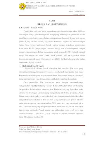 PABRIK FATTY ALCOHOL DARI METIL ESTER DENGAN PROSES HIDROGENASI
