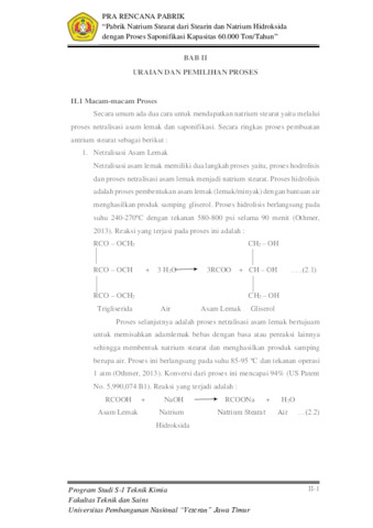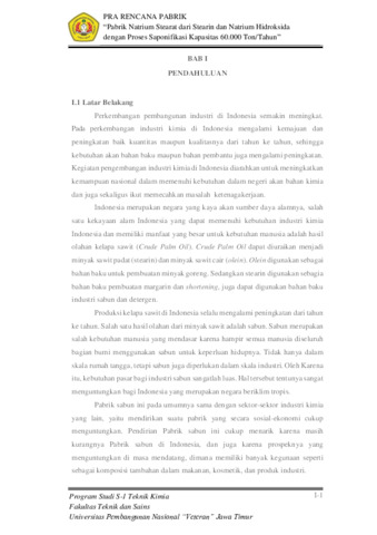 PRA RANCANGAN PABRIK NATRIUM STEARAT DARI STEARIN DAN NATRIUM HIDROKSIDA DENGAN PROSES SAPONIFIKASI KAPASITAS 60.000 TON/TAHUN