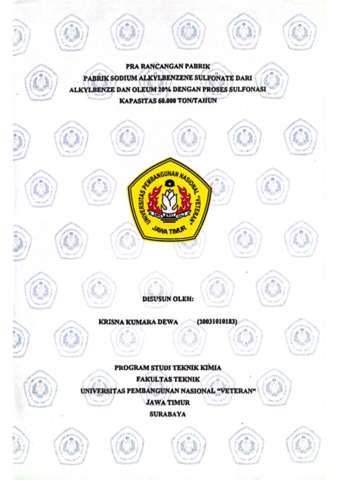 Dewa, Krisna Kumara (2024) Pra Rancangan Pabrik Sodium Alkylbenzene Sulfonate dari Alkylbenzene dan Oleum 20% dengan Proses Sulfonasi Kapasitas 60.000 Ton/Tahun. Undergraduate thesis, Universitas Pembangunan Nasional "Veteran" Jawa Timur.
