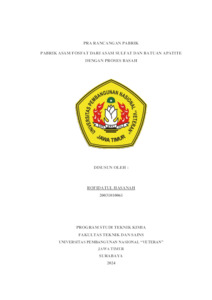 Hasanah, Rofidatul (2024) PRA RANCANGAN PABRIK ASAM FOSFAT DARI ASAM SULFAT DAN BATUAN APATITIE DENGAN PROSES BASAH. Undergraduate thesis, Universitas Pembangunan Nasional "Veteran" Jawa Timur.