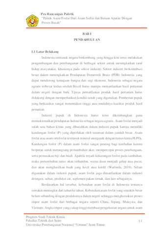 PRA RANCANGAN PABRIK ASAM FOSFAT DARI ASAM SULFAT DAN BATUAN APATITIE DENGAN PROSES BASAH