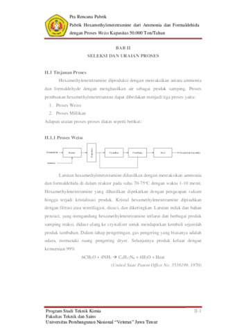 WINANDRI, KAUTSAR RAHMAN (2024) Pabrik Hexamethylenetetramine Dari Ammonia Dan Formaldehida Dengan Proses Weiss Kapasitas 50.000 Ton/Tahun. Undergraduate thesis, UPN Veteran Jawa Timur.