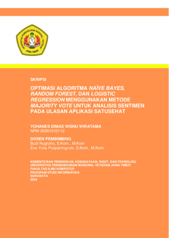 Wiratama, Yohanes Dimas Wisnu (2024) OPTIMASI ALGORITMA NAÏVE BAYES, RANDOM FOREST, DAN LOGISTIC REGRESSION MENGGUNAKAN METODE MAJORITY VOTE UNTUK ANALISIS SENTIMEN PADA ULASAN APLIKASI SATUSEHAT. Undergraduate thesis, Universitas Pembangunan Nasional "Veteran" Jawa Timur.