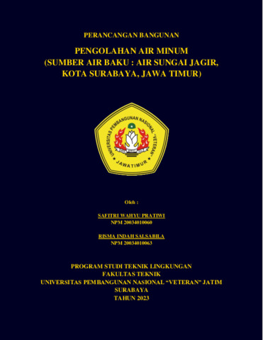 Pratiwi, Safitri Wahyu and Salsabila, Risma Indah (2023) PERANCANGAN BANGUNAN PENGOLAHAN AIR MINUM (SUMBER AIR BAKU : AIR SUNGAI JAGIR, KOTA SURABAYA, JAWA TIMUR). Undergraduate thesis, UPN Veteran Jawa Timur.