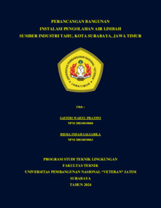 Pratiwi, Safitri Wahyu and Salsabila, Risma Indah (2023) PERANCANGAN BANGUNAN INSTALASI PENGOLAHAN AIR LIMBAH SUMBER INDUSTRI TAHU, KOTA SURABAYA, JAWA TIMUR. Undergraduate thesis, UPN Veteran Jawa Timur.