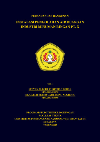 Pohan, Steven Albert Christian and Nugroho, RR. Galuh Retno Cahyaning (2024) INSTALASI PENGOLAHAN AIR BUANGAN INDUSTRI MINUMAN RINGAN PT. X. Undergraduate thesis, UPN "Veteran" Jawa Timur.