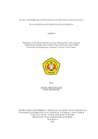 Halim, Ervin Ghozi (2024) Evaluasi Kebijakan Pengurangan Penggunaan Kantong Plastik di Pasar Pabean Kota Surabaya. Undergraduate thesis, UPN "Veteran" Jawa Timur.