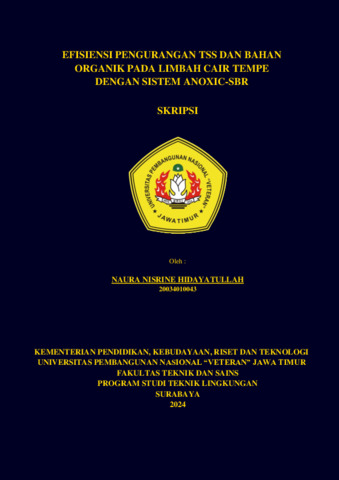 Hidayatullah, Naura Nisrine (2024) EFISIENSI PENGURANGAN TSS DAN BAHAN ORGANIK PADA LIMBAH CAIR TEMPE DENGAN SISTEM ANOXIC-SBR. Undergraduate thesis, UPN "VETERAN" JAWA TIMUR.