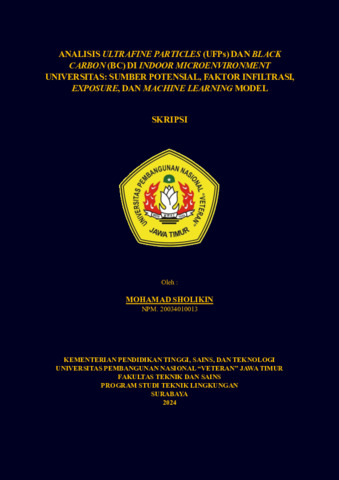 Sholikin, Mohamad (2024) Analisis Ultrafine Particle (UFPs) dan Black Carbon (BC) di Indoor Microenvironment Universitas: Sumber Potensial, Faktor Infiltrasi, Exposure, dan Machine Learning Model. Undergraduate thesis, UPN Veteran Jawa Timur.