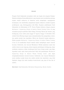 The Independent Study Program is part of the Merdeka Campus program, a policy of the Ministry of Education, Culture, Research, and Technology, which plays a role in providing opportunities for all students in Indonesia to study, improve their skills, and provide experience to students through learning activities organized by Partners. This Independent Study learning activity is carried out at PT. Neosia Pratama Indonusa with the Mechanical Engineering Design & Analysis Neosia Training Center program, which is a training program in the field of Design and Analysis Technology which takes place online from August 18 to December 31, 2022 via Zoom Meeting with the aim of introducing science, design, and analysis of products and manufacturing (Machinery and Automotive) to students. In this Mechanical Engineering Design & Analysis Neosia Training Center program, it provides many benefits in studying Autoesk Inventor, Solidworks, and Autocad Mechanical materials. Through direct explanations of materials and design analysis during learning activities, it can help students in building work results in the form of projects that can be used for aspects of the professional world. The results of learning Mechanical Engineering Design & Analysis Neosia Training Center, namely being able to implement Autoesk Inventor, Solidworks, and Autocad Mechanical to create product and manufacturing design and analysis projects that have been learned as tools for creating designs that will be made and analyzed.