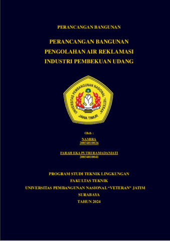 NAMIRA, NAMIRA and RAMADANIATI, FARAH EKA PUTRI (2024) PERANCANGAN BANGUNAN PENGOLAHAN AIR REKLAMASI INDUSTRI PENGOLAHAN UDANG. Undergraduate thesis, UPN Veteran Jawa Timur.