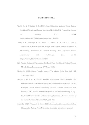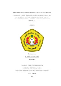 Rahmantto, Mohammad Rizki (2024) ANALISIS LINE BALANCING MENGGUNAKAN METODE RANKED POSITIONAL WEIGHT (RPW) DAN REGION APPROACH (RA) PADA LINI PRODUKSI BROAD PLATE DI PT. RISA IMPLANTAMA SURABAYA. Undergraduate thesis, UPN "Veteran" Jawa Timur.