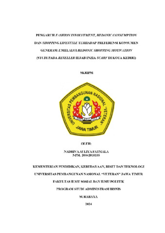 Fatmala, Nadhiva Auliya (2024) PENGARUH FASHION INVOLVEMENT, HEDONIC CONSUMPTION DAN SHOPPING LIFESTYLE TERHADAP PREFERENSI KONSUMEN GENERASI Z MELALUI HEDONIC SHOPPING MOTIVATION (STUDI PADA RESELLER HIJAB INZIA SCARF DI KOTA KEDIRI). Undergraduate thesis, UPN VETERAN JATIM.