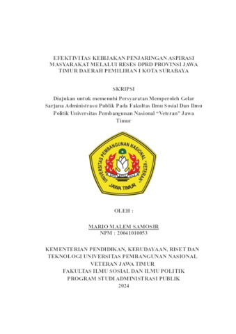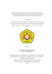 SAMOSIR, MARIO MALEM (2024) EFEKTIVITAS KEBIJAKAN PENJARINGAN ASPIRASI MASYARAKAT MELALUI RESES DPRD PROVINSI JAWA TIMUR DAERAH PEMILIHAN I KOTA SURABAYA. Undergraduate thesis, Universitas Pembangunan Nasional "Veteran" Jawa Timur.