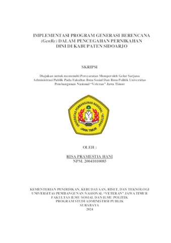 Hani, Risa Pramestia (2024) Implementasi Program Generasi Berencana (GenRe) dalam Pencegahan Pernikahan Dini di Kabupaten Sidoarjo. Undergraduate thesis, UPN Veteran Jawa Timur.