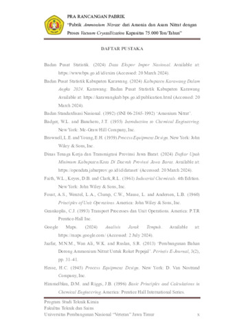 Dinda, Arni Mashita (2024) Pra Rancangan Pabrik Ammonium Nitrate dari Ammonia dan Asam Nitrat dengan Proses Vacuum Crystallization Kapasitas 75.000 Ton/Tahun. Undergraduate thesis, UPN "Veteran" Jawa Timur.