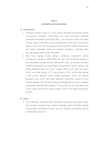 Pengaruh Penambahan Starter Lactobacillus plantarum FNCC-0026 Terhadap Karakteristik Jagung Kuning Terfermentasi dan Nasi Aron